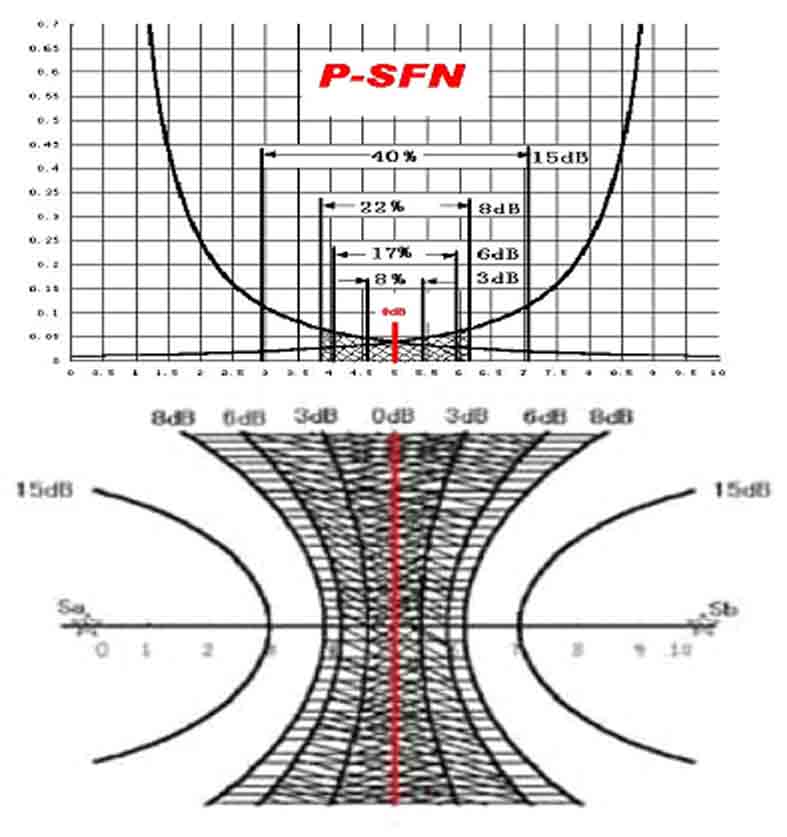 TM 2010XP 精密相位制中波同步广播设备,将同频干扰区域缩小至图中的0dB等场强“红线”。