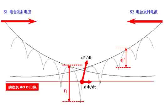 贝塞尔失真的频率选择性衰落也可以这样理解,当两个调幅射频信号叠加,时延差一定时,对不同频率的音频信号的相位差却不同,自然叠加后的幅度相应也不会相同。极端的情况是,时延差对应某一频率的相位差为180�时,相位相反,输出最小,即为谷点。而对另一频率的相位差为360�,则同相叠加,输出最大,即为峰点。
